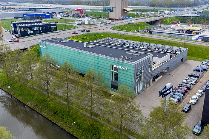 “Ons stroomgebruik nam de afgelopen jaren flink toe. Daarvan kreeg ik meerdere meldingen, wat mij op een gegeven moment deed nadenken over het terugdringen van ons energiegebruik; enerzijds om een flinke boete te voorkomen, anderzijds om als bedrijf duurzamer te worden,” aldus Rick Jansen, vestigingsdirecteur van Broekhuis Volvo Utrecht. “Dit, in combinatie met de oude gevelwand die aan vernieuwing toe was, deed ons besluiten om te verbouwen met verduurzaming als grootste doel. Tijdens het maken van de plannen werd ook meteen gekeken naar de mogelijkheden om zonnepanelen te plaatsen, maar ons dak was hiervoor ongeschikt. Uiteindelijk bleek de ideale oplossing het combineren van de gevelrenovatie en de installatie van zonnepanelen. Het resultaat: een nieuwe gevel voorzien van 241 zonnepanelen.”