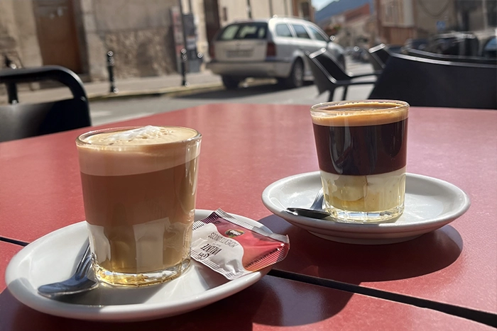 “Wordt Barcelona of Valencia de volgende bestemming?” Even op de weer-app kijken en toen was de keuze snel gemaakt. Valencia wordt ook wel tegelstad genoemd vanwege de rijke traditie in de productie en het gebruik van keramische tegels. Struin door de stad en bekijk de kleurrijke tegels op gevels, bankjes, fonteinen en binnenplaatsen. Rust uit op een terrasje en stel uzelf voor de volgende keuze: wordt het een Cortado of een Bombón? Een Cortado bestaat uit een espresso gemengd met een gelijke hoeveelheid warme melk. Bij een Café Bombón wordt eerst gecondenseerde melk in het glas geschonken waarna de espresso er voorzichtig bovenop wordt gegoten.