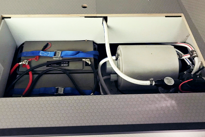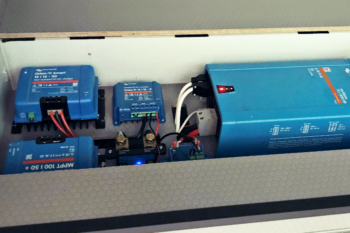 Mensen die met een buscamper reizen, gunnen anderen bovenstaande luxe van harte. Maar hun eigen voorkeur gaat uit naar de hoogst noodzakelijke elektrische voorzieningen. En dan hebben we het over een koelkast, waterpomp, verlichting, ventilatorkacheltje en usb-aansluitingen. Tom: “Aan deze vijf heb je feitelijk genoeg om jezelf helemaal te kunnen redden. Onze buscampers beschikken over een sterk accupakket plus omvormer van 12 naar 220 Volt met een zodanige capaciteit dat je daar prima off grid mee vooruit kunt. Je kunt in de buscamper natuurlijk ook een waterkoker, koffiezetter, magnetron en oventje meenemen, maar die vragen veel stroom en doen feitelijk afbreuk aan de avontuurlijke vorm van reizen. Dus in plaats van een tweede accu is koken op gas het meest efficiënt. En een kacheltje op diesel kan prima, want de brandstof daarvoor komt rechtstreeks uit de tank van de buscamper.”