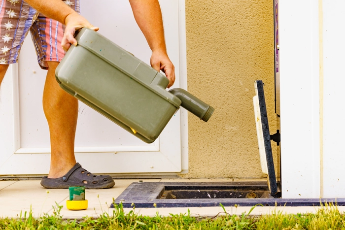 Na het legen van de afvaltank op de daarvoor bestemde plaats, spoelt u de tank goed door met schoon water. Vul de tank voor ongeveer de helft met water, sluit de afvoerpijp en schud de tank even om het van binnen te reinigen. Na het uitgieten van het spoelwater kunt u de afvaltank schoonmaken met een speciale reiniger. Dit helpt om restanten en geurtjes te verwijderen. Spoel daarna de tank nog een keer goed door. Tot slot vult u de tank met een beetje schoon water, voegt u de aanbevolen hoeveelheid chemische vloeistof toe en plaatst u de tank terug.